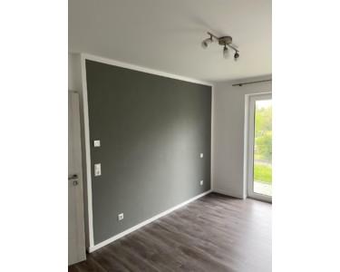 2-Zimmer Wohnung mit ca. 49 Quadratmeter Wohnfläche: Eingangsbereich mit Garderobe, Schlafzimmer, Tageslichtbadezimmer mit bodengleicher Dusche, zusätzlichem Handtuchheizkörper, Waschbecken und WC, großer Wohn- und Essbereich mit offener Küche und Zugang zur eigenen Terrasse und eigenem Garten.