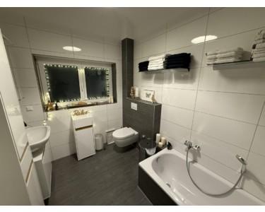 - Oben Tageslicht-Bad mit Badewanne, Dusche und WC, zusätzlich Gäste WC