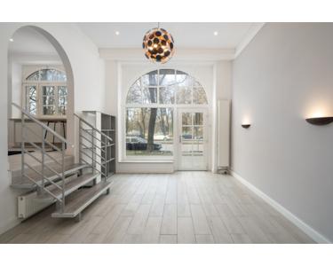 Inmitten des begehrten Stadtteils Schwabing befindet sich diese außergewöhnliche Immobilie – ein Ort, der durch seine Lichtdurchflutung, den offenen Raumcharakter und die harmonische Architektur sofort ein besonderes Wohlgefühl vermittelt. Großzügige Rundbögen, elegante Steinfliesen und eine große Fensterfront schaffen ein stilvolles Ambiente, das den Charme historischer Bausubstanz mit zeitgemäßem Komfort verbindet.