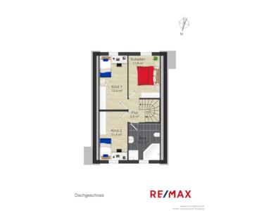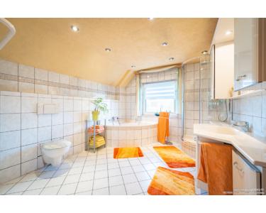 Im Dachgeschoss befinden sich das Elternschlafzimmer sowie zwei weitere Zimmer, die sich flexibel als Kinder-, Arbeits- oder Gästezimmer einrichten lassen. Das freundliche Tageslichtbad mit seiner komfortablen Eckbadewanne bietet Ihnen einen ruhigen Ort zum Entspannen.