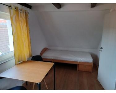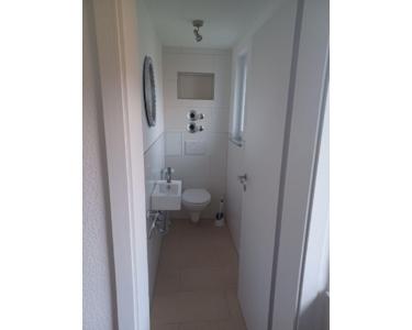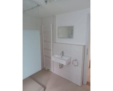 Die Wohnung verläuft über das 1. OG und das DG. Im ersten OG. Befindet sich die voll ausgestattete Küche, zwei Zimmer, eine Tageslicht Walk-In-Dusche mit Regenbrause und ein Gäste-WC ebenso mit Tageslicht. Im Bad ist ausreichen Platz zur Unterbringung einer Waschmaschine und eines Trockners. Entsprechende Anschlüsse sind verlegt. In jedem Zimmer befindet sich ein LAN-Anschluss.