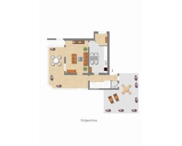 Hier wurde mit viel Liebe zum Detail geplant. Eine einzigartige Wohnatmosphäre präsentiert sich im EG mit einer offenen Raumgestaltung. Die hochwertig ausgestattete Einbauküche mit Markengeräten passt sich ebenso harmonisch in das Gesamtbild ein, wie das darauffolgende Wohn-Esszimmer mit Wintergarten.