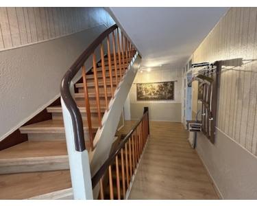 Über eine massive Holztreppe gelangt man in die Wohnräume im Obergeschoss und Dachgeschoss.