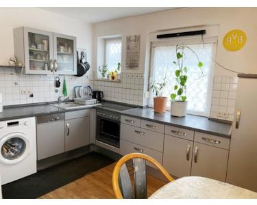 - Einbauküche mit Großgeräten (Backofentür defekt) sowie Waschmaschinenanschluss incl. der Waschmaschine
