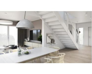 Im Erdgeschoss ist ein heller großzügiger Wohn-Ess-Kochbereich mit angrenzender Speisekammer zu finden. Weiter gibt es ein separates Mehrzweckzimmer und Duschbad, wo die Arbeit oder Gäste die nötige Ruhe finden.
