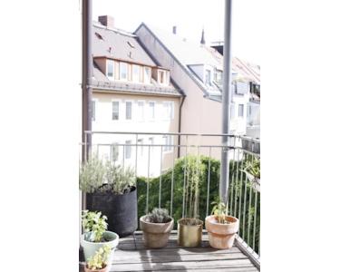- großer Balkon (5,6 qm): mit Wasseranschluss und Blick in den grünen Innenhof, Sonne von morgens bis nachmittags (Ost-Süd)