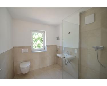 Tageslichtbadezimmer mit bodengleicher Dusche und WAMA-Anschluss