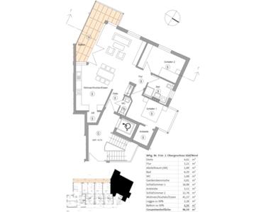 Die Wohnung überzeugt durch ihre hochwertige Ausstattung und eine großzügige Raumaufteilung. Mittelpunkt ist der ca. 41 m² große Wohn-, Ess- und Kochbereich mit Zugang zum sonnigen, über Eck laufenden Panoramabalkon, der zu entspannten Stunden im Freien einlädt. Ein weiteres besonderes Highlight ist eines der Schlafzimmer mit Vollglaserker und eigener Ankleide – ein Rückzugsort mit Wohlfühlcharakter. Das moderne Tageslichtbadezimmer ist mit einer bodengleichen Dusche und einem Waschmaschinenanschluss ausgestattet. Zusätzlich sorgt ein separates Gäste-WC für mehr Komfort. Ein praktischer Abstellraum rundet das Raumangebot ab.