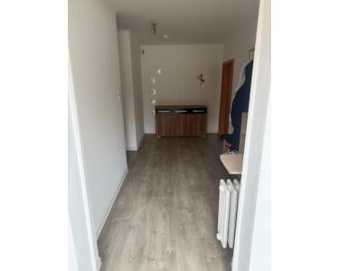 Die helle Wohnung mit eigenem Eingang, verfügt über ein Schalfzimmer mit eingebautem Kleiderschrank, ein Wohnzimmer, eine Essdiele, eine große Küche mit Abstellraum, Einbauküche VB 100,00 €, eine Dusche, ein Toilette und eine Garage