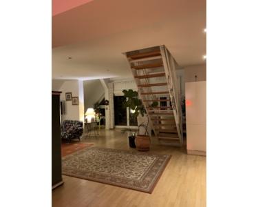 Zum 01.04.2026 können Sie diese attraktive Maisonette-Wohnung in der dritten Etage beziehen, die durch eine gehobene Innenausstattung besticht. Empfangen werden Sie von einem Loft-ähnlichen, sehr großem Wohnbereich mit offener, U-förmiger Küche mit barähnlichem Eßbereich. Drei hübsche Zimmer laden zur freien Entfaltung und individuellem Einrichten ein. Eine Besonderheit ist, daß es nicht nur eine große Terrasse gibt, sondern Sie auch den Garten am Haus zu Ihrer Erholung nutzen können. Ihnen stehen außerdem ein Stellplatz für Ihr Auto und ein Kellerraum zur Verfügung. Bei Bedarf können Sie weitere Stellplätze hinzu mieten. Zu ebener Erde gibt es einen Fahrradraum für die Hausbewohner.