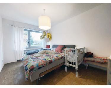 Wohnungen rechts: Wohn- und Esszimmer, Küche, Diele, Bad, Abstellraum, Elternschlafzimmer, Kinderzimmer (respektive Büro) und Balkon