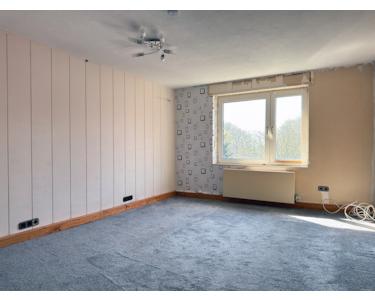 Erdgeschoss: Wohn- und Esszimmer (mit Kaminanschluss), Elternschlafzimmer, Küche, Diele, Bad (mit Wanne, WC und Waschtisch)