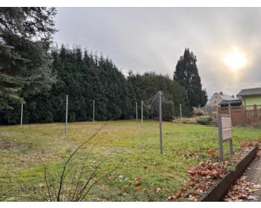 Ein Grundstück von 860 m², mit einem Garten im hinteren Bereich und Stellplätze vor dem Haus.