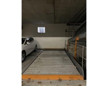Ein Pkw-Stellplatz in der Tiefgarage gehört zum Wohnungseigentum. Der Stellplatz auf der oberen Ebene des Vierfach-Parkers (Duplex Hebebühnentechnik) bietet Kopffreiheit zum bequemen Ein-/Aussteigen.