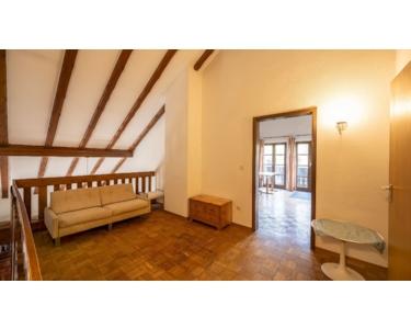 Besonders hervorzuheben ist die flexible Wohnlösung im Dachgeschoss: Hier befinden sich zwei großzügige, helle Zimmer. Eines dieser Zimmer bietet direkten Zugang zum Balkon. Das zweite Zimmer war ursprünglich Bestandteil einer separaten Einliegerwohnung und verfügt über ein kleines Bad, eine kleine Küchenzeile sowie einen sehr großen Kriechboden mit zusätzlichem Stauraum. Die Einliegerwohnung hat einen eigenen Zugang über ein separates Treppenhaus und eignet sich ideal für eine Einzelperson, einen Studenten, ein Au-pair oder ein volljähriges Kind. Eine nachträglich eingebaute Verbindungstür macht bei Bedarf die Nutzung als durchgehende Wohnfläche möglich.
