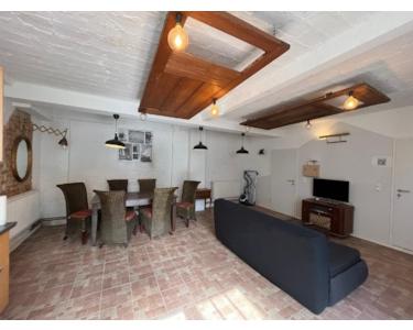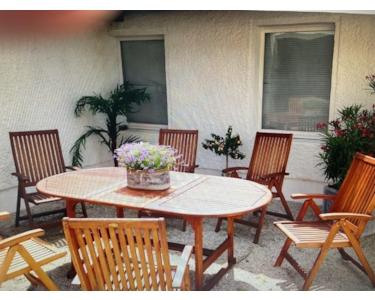 The apartment is fully furnished and offers three bedrooms with two single beds each, along with a pull-out sofa bed in the living room. The open kitchen is completely equipped and includes both a washing machine and a dishwasher. A sunny terrace with garden furniture is available for outdoor enjoyment. The flat is well suited for shared living arrangements and is equipped with fast Wi-Fi for added convenience.