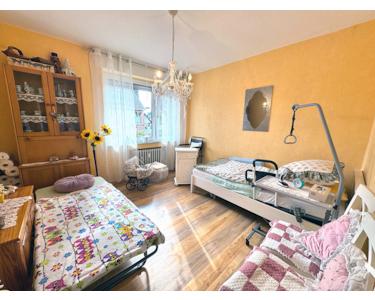 Diese interessante Wohnung befindet sich im 1. Obergeschoss eines Mehrfamilienhauses, welches um 1965 in unterkellerter Massivbauweise auf einem ca. 924 m² großen Grundstück in Oberbruch errichtet wurde.