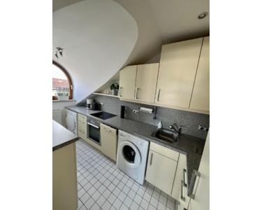 Diese lichtdurchflutete 3-Zimmer-Wohnung mit 90 qm bietet gehobenes Wohnen im Dachgeschoss einer gepflegten Wohnanlage. Die besondere Architektur mit Rundbogenfenstern und hohen Räumen schafft ein großzügiges Raumgefühl.