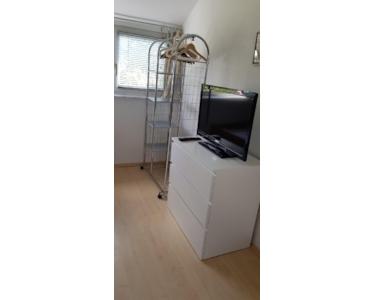 ein Bett 090m x 2m, mit neuer Matratze. 1 Regal mit Kleiderstange für die Kleidung, sowie