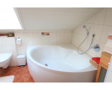 -Das Badezimmer ist mit einer Eckbadewanne, einer separaten Dusche,