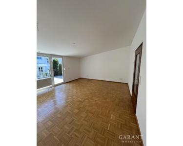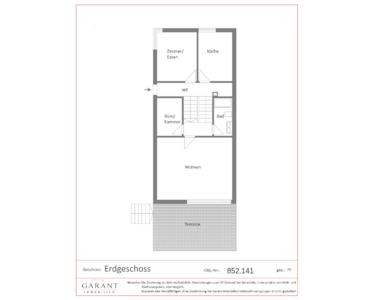 Auf der Eingangsebene befindet sich neben der Küche (ohne Einbauküche) ein Esszimmer sowie eine kleine Garderobennische. Geht man wenige Stufen nach oben, gelangt man in ein lichtdurchflutetes Wohnzimmer mit Zugang zur großen Südterrasse. Diese lädt zu vielen schönen Stunden im Freien ein. Eine elektrisch ausfahrbare Markise spendet an sonnigen Tagen Schatten. Seitlich von der Terrasse führen wenige Stufen hinab in den kleinen, gut eingewachsenen Gartennanteil.