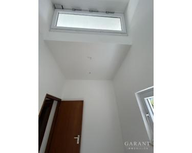 Ein Büro/Ankleidezimmer sowie ein modernes Bad mit bodengleicher Glasdusche sind gleich neben dem Wohnzimmer untergebracht. Beide Räume verfügen über einen hohen Luftraum und obenliegende, elektrisch gesteuerte Fenster. Im Obergeschoss des Hauses liegen die beiden Schlafzimmer und ein WC mit Waschbecken.
