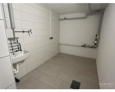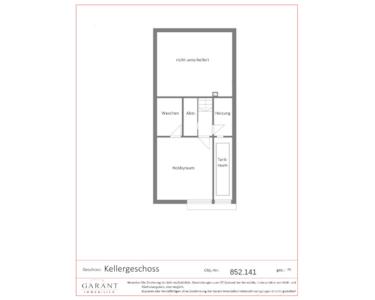 Im Untergeschoss gibt es neben den Wirtschaftsräumen (Speise-/Abstellkammer, Heizungs-/Tankraum, Waschküche) auch einen großen Hobbyraum. Ihm ist ein verglaster Außenbereich unter der Terrasse vorgelagert (Raumhöhe ca. 1,80), der als zusätzlicher Stauraum dient.
