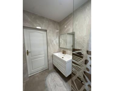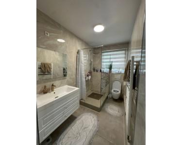 Neues Badezimmer mit hochwertigen Fliesen, moderner bodentiefer Dusche und neuem WC