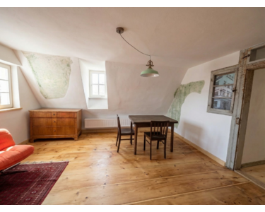 Zimmer 5: ca 8qm (3.OG) + 23qm (4.OG, Nutzfläche) + 83qm Allgemeinfläche >> Kaltmiete: 730