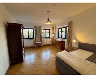 The building is part of a listed heritage complex dating back to the 16th century and has been comprehensively and high-quality renovated. The apartment offered comprises approx. 200 sqm of usable space across three floors and combines historic substance with contemporary amenities. Preserved wall and ceiling paintings shape the character of the rooms and make living here truly exceptional.