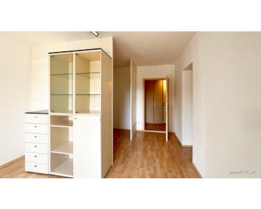 Der Wohnraum präsentiert sich hell und freundlich und bietet dank der bereits abgetrennten Schlafnische eine klare Gliederung in Wohnen und Schlafen. Der Boden ist mit modernem, hellem Laminat ausgestattet, was dem Raum zusätzliche Großzügigkeit und Weite verleiht. In der Diele sorgen praktische Einbauschränke für weiteren Stauraum. Die separate Küche ist mit einer Einbauküche samt Waschmaschine und Geschirrspüler ausgestattet. Das modernisierte Badezimmer ist hell gefliest und verfügt über eine Badewanne. Ein Kellerabteil steht als weiterer Stauraum zur Verfügung.