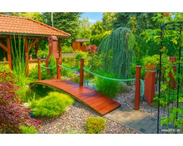 • Gepflegter Garten mit Teich und Pavillon