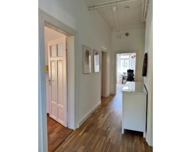 • Echtholzböden, hohe Decken und teilweise Stuckdekor – stilvolle Details erhalten