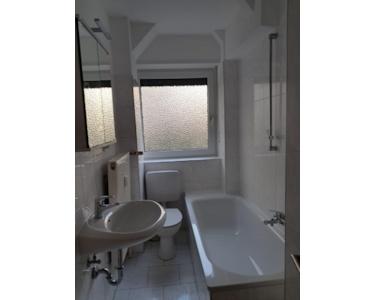 - gefliestes Tageslichtbad mit Spiegelschrank und Badewanne