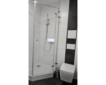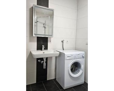 - Bad: Helles Badezimmer mit Dusche und eigener Waschmaschine.