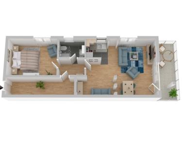 Das separate Schlafzimmer und das Badezimmer (inkl. Waschmaschine) machen die Wohnung zur vollwertigen Bleibe. Auf dem breiten Süd-Ost-Balkon können Sie entspannt frühstücken oder den Feierabend genießen.