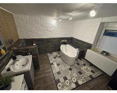 Auf einer Wohnfläche von ca. 90 m² bietet das Haus eine durchdachte Raumaufteilung über mehrere Ebenen hinweg. Das Erdgeschoss präsentiert sich besonders einladend: Küche, Bad und Wohnzimmer wurden in den letzten Jahren umfassend modernisiert und überzeugen mit einem zeitgemäßen, stilvollen Ambiente. Die Küche aus 2021 verbindet Funktionalität mit ansprechendem Design, während das ebenfalls 2021 sanierte Badezimmer ein frisches, modernes Gesamtbild vermittelt. Das Wohnzimmer bietet ausreichend Platz für gemütliche Stunden und besticht durch seine helle, freundliche Atmosphäre.