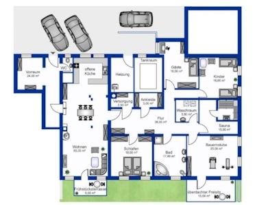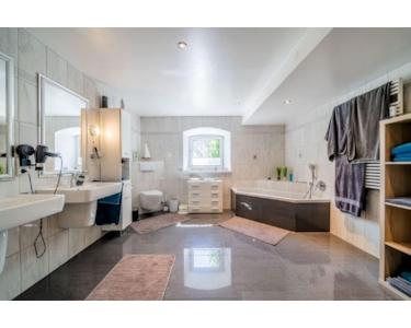 Drei ruhige Schlafzimmer schaffen Raum für Rückzug und Erholung. Ein hochwertig ausgestattetes 17 m² großes Badezimmer, ein Waschraum, ein Gäste-WC, eine separate Bauernstube und Sauna sowie drei Dielen unterstreichen das durchdachte Wohnkonzept. Ob Homeoffice-Oase oder Mehrgenerationenlösung, die Aufteilung lässt keine Wünsche offen.