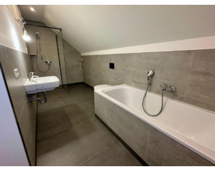 •Das moderne Tageslichtbad wird zum echten Wohlfühlraum: ausgestattet mit einer ebenerdigen Dusche, zusätzlicher Badewanne, großformatigen modernen Fliesen sowie einem Waschmaschinenplatz.