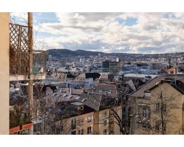 - Panoramablick auf die City aus dem Wohnbereich (diagonal - aus dem Wohn-/Esszimmerbereich)