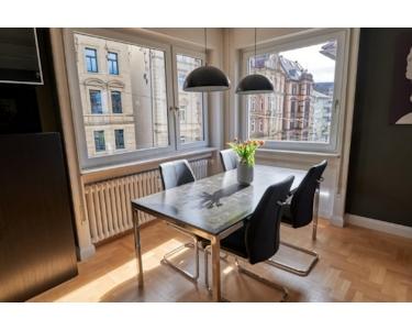 - Ausblick auf die Alexanderstraße (denkmalgeschützte Gebäude) aus Schlafzimmer, Küche und Essbereich