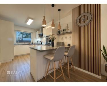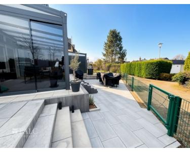 Der neu errichtete, moderne Wintergarten erweitert den Wohnraum auf elegante Weise und schafft einen lichtdurchfluteten Übergang zwischen Innen- und Außenbereich. In den Wohnräumen wurde überwiegend hochwertiger Vinylboden verlegt, ergänzt durch Fliesen in den Bädern und funktionalen Bereichen, wodurch ein stimmiges und pflegeleichtes Gesamtbild entsteht.