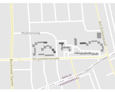Das „Quartier Buckower Höfe“ liegt im Stadtteil Buckow in ruhiger Stadtrandlage. Die Stadtgrenze zu Brandenburg und das grüne Berliner Umland sind nur wenige Gehminuten entfernt. Buckow ist ein ruhiges Wohngebiet. Siedlungsbauten und Bereiche mit Einfamilienhäusern wechseln sich ab. Die Anbindung an den öffentlichen Personennahverkehr ist recht gut. Es gibt zahlreiche Kitas und Schulen. Die Angebote für Sport und Erholung sind sehr gut. Der Britzer Garten mit seinen vielfältigen Angeboten liegt nicht weit entfernt.