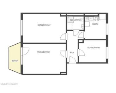 Die Wohnfläche von ca. 58 m² verteilt sich auf ein großzügiges Wohnzimmer mit Zugang zum Balkon, zwei weitere gut geschnittene Zimmer, die sich flexibel als Schlaf-, Arbeits- oder Kinderzimmer nutzen lassen, eine separate Küche sowie ein innenliegendes Badezimmer mit Dusche. Der Balkon ergänzt den Wohnraum sinnvoll und bietet einen angenehmen Rückzugsort.