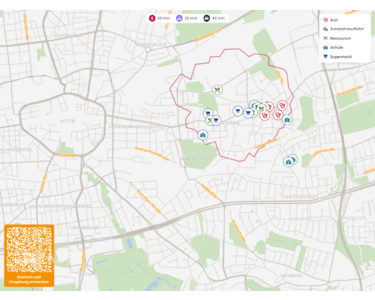 Für den täglichen Bedarf ist bestens gesorgt: Ein Aldi und ein REWE befinden sich in ca. 100 bzw. 250 Metern Entfernung, was komfortable Einkaufsmöglichkeiten bietet. Gesundheitsdienstleistungen stehen ebenfalls in der Nähe zur Verfügung, da mehrere Ärzte und eine Apotheke innerhalb von kurzen Spaziergängen erreichbar sind.