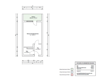 Wohnfläche: ca. 28,5 m² inklusive Balkon zur Hälfte