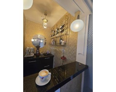 Vielleicht möchten Sie einen Espresso an der goldmosaikgefliesten Bar einnehmen.