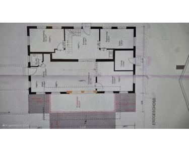 Das KfW-55-Haus in Holzständerbauweise mit 25 °Giebeldach, hat zwei Vollgeschosse. EG 2.70m Raumhöhe , 1. OG zum Dach offen, 10.000 kwp PV Anlage mit Versorgung von Hausstrom und Heizung,