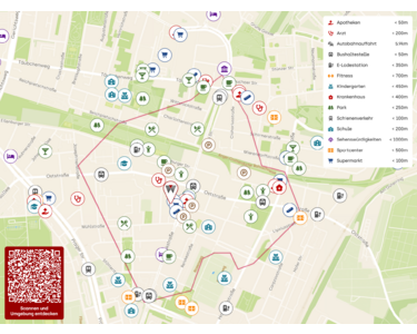Die Nähe zu Bildungseinrichtungen ist ein weiterer Pluspunkt. Die Humboldtschule, ein renommiertes Gymnasium, befinden sich nur ca. 180 Meter entfernt. Familien mit Kindern profitieren zudem von der Nähe zu mehreren Kindergärten, die alle innerhalb eines Radius von ca. 500 Metern liegen.