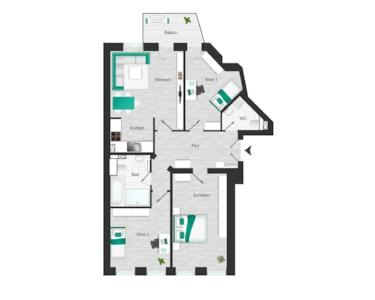 Zwei zusätzliche Räume ermöglichen eine individuelle Nutzung, beispielsweise als Kinder-, Gäste- oder Arbeitszimmer. Das kleinere Zimmer mit direktem Balkonzugang eignet sich hervorragend als Homeoffice oder Jugendzimmer. Das zweite, quadratisch geschnittene Zimmer bietet ideale Voraussetzungen für kreative Einrichtungsideen.